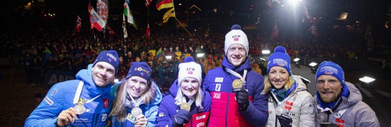 20.02.2020, Antholz, Italy (ITA): Emilien Jacquelin (FRA), Anais Bescond (FRA), Marte Olsbu Roeiseland (NOR), Johannes Thingnes Boe (NOR), Franziska Preuss (GER), Erik Lesser (GER), (l-r) © Manzoni/NordicFocus