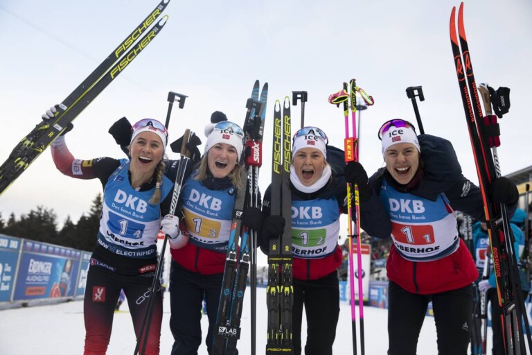 11.01.2020, Oberhof, Germany (GER): Tiril Eckhoff (NOR), Marte Olsbu Roeiseland (NOR), Ingrid Landmark Tandrevold (NOR), Synnoeve Solemdal (NOR), (l-r) © Manzoni/NordicFocus
