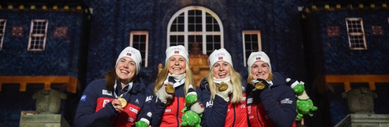 16.03.2019, Oestersund, Sweden (SWE): Synnoeve Solemdal (NOR), Ingrid Landmark Tandrevold (NOR), Tiril Eckhoff (NOR), Marte Olsbu Roeiseland (NOR) © Tumashov/NordicFocus