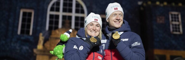 14.03.2019, Oestersund, Sweden (SWE): Marte Olsbu Roeiseland (NOR), Johannes Thingnes Boe (NOR), (l-r) © Manzoni/NordicFocus