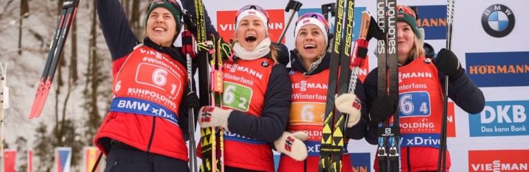 19.01.2019, Ruhpolding, Germany (GER): Synnoeve Solemdal (NOR), Ingrid Landmark Tandrevold (NOR), Tiril Eckhoff (NOR), Marte Olsbu Roeiseland (NOR) © Tumashov/NordicFocus