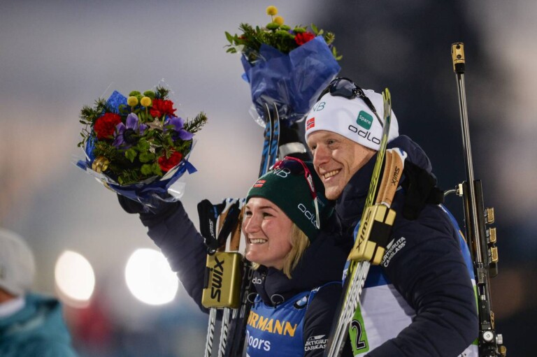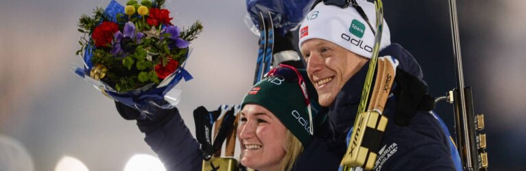 14.03.2019, Oestersund, Sweden (SWE): Marte Olsbu Roeiseland (NOR), Johannes Thingnes Boe (NOR) © Tumashov/NordicFocus