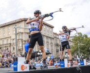 Anna Weidel und Roman Rees sprinten beim City Biathlon in Wiesbaden aufs Podest