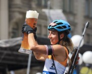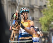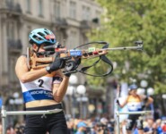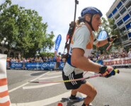 Nach 2019 gewinnt die Italienerin Lisa Vittozzi zum zweiten Mal den Sprint der Damen beim City Biathlon in Wiesbaden. Vittozzi ließ ihren Gegnerinnen keine Chance, zeigte sich treffsicher in den sechs Schießeinlagen (drei Mal liegend, drei Mal stehend) und war auch auf den Skirollern schnell unterwegs. Sie benötigte insgesamt nur drei Nachlader und überquerte die Ziellinie mit 45,3 Sek. Vorsprung vor Anna Weidel. Die Deutsche lag nach den drei Liegendschießen an dritter Position hinter Lou Jeanmonnot und während die Französin im ersten Stehendanschlag einen Nachlader benötigte, gelang Anna Weidel eine saubere Serie. Auf der Strecke machten die beiden gemeinsame Sache aber am Schießstand beim vorletzten Anschlag brachte sich Weidel mit nur einem Nachlader auf die zweite Position, während Jeanmonnot in die Penalty-Box abbbiegen musste. Zwischenzeitlich hatte sich Dorothea Wierer auf Rang drei gearbeitet. Beim entscheidenden Schießen war Lisa Vittozzi nach einer perfekten fehlerfreien Serie bereits in die Schlussrunde eingebogen, bevor Anna Weidel auf die Matte kam. Sie begann mit einem Fehler, traf die vier weiteren Scheiben und ließ die letzte Scheibe mit dem ersten Nachlader weiß werden. Mit 48,2 Sek. Rückstand lag Weidel auf dem zweiten Rang. Lou Jeanmonnot sicherte sich Rang drei vor Dorothea Wierer. Die City Biathlon Siegerin aus 2021 gewann zwar das Duell am Schießstand, aber auf der Strecke konnte sie das Tempo der Französin nicht mitgehen. Wierer riskierte keinen Angriff und gab sich mit Rang vier zufrieden. Hanna Kebinger und Vanessa Voigt hatten zu große Probleme am Schießstand und belegten am Ende die Ränge 6 und 7.