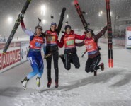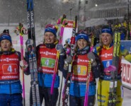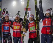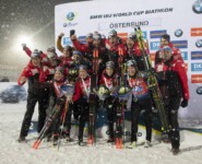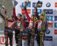 Die deutschen Damen starteten im Team mit Karolin Horchler, Denise Herrmann, Vanessa Hinz und Franziska Preuß als Schlussläuferin. Leider hat es für das Podium knapp nicht gereicht, obwohl alle Vier eine gute solide Leistung geboten haben. Der kleine Erfolg dürfte das Selbstbewusstsein der Damen für den Weltcup nächste Woche in Hochfilzen stärken. Karolin Horchler hat als Startläuferin an sechster Position mit 33,4 Sek. Rückstand auf Denise Herrmann übergeben, die in ihrer ersten Runde zwar zwei Plätze gut machte, sich aber nach einer Strafrunde nach dem liegenden Anschlag an achter Position wieder fand. Im stehenden Anschlag lief es besser, die fünf Scheiben fielen ohne Nachlader, auf ihrer Schlussrunde halbierte sie mit der schnellsten Laufzeit den Rückstand und schickte Vanessa Hinz mit einem Abstand von 16,8 Sek. zur Führenden an dritter Position ins Rennen. Auch Vanessa Hinz hatte keine Probleme das schnelle Lauftempo auf der kurzen 2 km-Runde mitzugehen. Mit einem Nachlader im Liegendanschlag, zwei weiteren im stehenden Anschlag und der zweiten Laufzeit in ihrer Runde wechselte sie an dritter Position nur 3 Sek. hinter der Führung. Franziska Preuß war seit 2015 nicht mehr als Schlussläuferin einer deutschen Damenstaffel eingesetzt, hat liegend alle Scheiben getroffen und sich auf der dritten Position gehalten. Nach dem entscheidenden Schießen ging die Norwegerin Marte Olsbu Roeiseland als Erste auf die Schlussrunde, Schweden und die Schweiz folgten dicht hintereinander und bei Franziska Preuß verfehlte der letzte Schuss sein Ziel. Nach einem schnellen Nachlader nahm sie an vierter Position mit 9,4 Sek. Rückstand die Verfolgung auf. Die Schwedin und die Schweizerin kämpften um die Podestplätze und kurzzeitig kam auch Franziska Preuß näher an die beiden heran, aber am Ende reichte es nicht mehr ganz und Lena Haecki lief ihr Team auf Silber, Hanna Oeberg auf Bronze und für Franziska Preuß blieb 5,3 Sek. dahinter nur Blech.