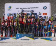 Das Team aus der Schweiz hatten heute nicht viele auf der Rechnung. Die drei Gasparin-Schwestern Elisa, Selina und Aita haben mit nur drei Nachladern ihre Staffel in Schlagdistanz gebracht und Lena Haecki ging mit der dritten Laufzeit in ihrem Leg nach lediglich einem Nachlader nur 1,2 Sek. hinter der Schwedin Hanna Oeberg auf eine spannende Schlussrunde. Die Top-Form von Lena Haecki hat sich mit Platz 8 im Sprint, Platz 6 im Einzel und Platz 6 mit der Mixed-Staffel in den Tagen von Östersund bereits angedeutet und so verblüffte es nicht, dass sie schnell an der Schwedin vorbeizog und auf dem Silberrang ins Ziel kam, nur 1,7 Sek. vor den Schwedinnen mit Linn Persson, Elvira Oeberg, Mona Brorsson und Hanna Oeberg (8 NL).