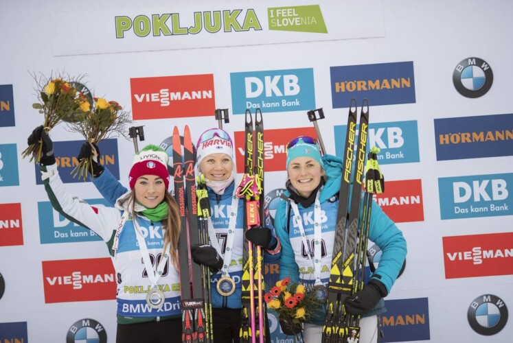 Kaisa Mäkäräinen gewinnt den Sprint der Damen in Pokljuka vor Dorothea Wierer und Justine Braisaz. Franziska Preuß belegt Rang 9 und die junge Anna Weidel wird Zehnte.