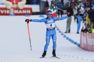 Mit der italienischen Flagge kam Tommaso Giacomel als Sieger ins Ziel und unter tosendem Applaus überquerte Eric Perrot die Ziellinie als Zweiter. Für Giacomel war das bereits der zweite Weltcupsieg in dieser Saison und möglicherweise bereits ein gutes Zeichen, vorausgesetzt er kann seine Form halten, für die Olympischen Winterspiele in Mailand/Cortina, wo die Biathlon-Bewerbe in seinem Heimatstadion, in Antholz ausgetragen werden. „Es ist unglaublich, alleine hier zu gewinnen ist mein Traum gewesen seit ich Biathlon mache,“ so Giacomel nach dem Sieg im ZDF. „Mir gefällt es hier, die Kulissen sind gewaltig, die Leute liegen mir enorm gut, es ist immer mein Traum gewesen,“ obwohl Giacomel einschränkte, dass er wohl von den Zuschauern nicht unterstützt wurde. „Vor dem letzten Schießen habe ich gedacht, jetzt bist nur du gegen die Scheiben und du musst auf nichts anderes Acht geben.“ Und das ist ihm hervorragend gelungen. In der Gesamtweltcupwertung ist Giacomel nun einen weiteren Rang vorgerückt und ist mit 16 Punkten Abstand hinter Eric Perrot Dritter. Johan-Olav Botn bleibt in gelb und führt in der Wertung mit einem Vorsprung von 113 Punkten.