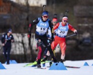 Strelow, Perrot und Giacomel brachten im ersten Stehendanschlag wieder die Null, auch der Schweizer Joscha Burkhalter, folgte allerdings bereits mit deutlichem Abstand von 23 Sekunden zur Spitze. Samuelsson verabschiedete sich nach zwei Schießfehlern in die Strafrunde, aber auch Philipp Nawrath musste erneut kreiseln, ebenso Philipp Horn und David Zobel. Auf der Runde zum entscheidenden Schießen war es wichtig sich die Kräfte so einzuteilen, dass die Null möglich ist. Obwohl der Italiener Giacomel bereits eine Strafrunde im Gepäck hatte, lief er extrem hohes Tempo und hatte sich schnell mit über zwölf Sekunden von den Verfolgern abgesetzt. Der Norweger Johan-Olav Botn strauchelte zwischenzeitlich auch zwei Mal am Schießstand, war aber schon wieder in das Verfolgerfeld vorgelaufen und führte nun eine große Verfolgergruppe hinter Giacomel, Perrot und Strelow an.