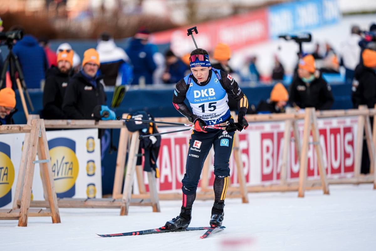 Mit dem Massenstart der Herren endete der Biathlon Weltcup im französischen Annecy Le Grand Bornand. Erfreulich dass sich aus deutscher Sicht mit Philipp Horn, Philipp Nawrath und Justus Strelow drei Athleten über die derzeitige Gesamtweltcupwertung qualifzierten und David Zobel als Nachrücker über die in Frankreich erzielten Ergebnisse starten durfte. Das rote Trikot trug Sturla Holm Laegreid; er hat letzte Saison diese Wertung gewonnen und in gelb war natürlich der norwegische Überflieger Johan-Olav Botn im Rennen. Die bisher 30 besten Biathleten der Saison waren qualifiziert und man vermutete einen Zweikampf zwischen den Franzosen und den Norwegern.