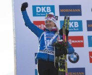 Das war ganz schön knapp zum Schluss! Lange musste die Tschechin Marketa Davidova im Ziel zittern, ob sie in Antholz tatsächlich den ersten Sieg ihrer Karriere in einem Biathlon-Weltcup feiern kann. Nur Laura Dahlmeier, die als letzte Starterin das Rennen aufnahm, hätte ihr den Sprintsieg in Antholz noch streitig machen können. Und es sah ganz danach aus, als Dahlmeier nach fehlerfreiem liegenden Anschlag auch stehend alle Scheiben abräumte und mit knappen 7,7 Sek. Vorsprung in Führung liegend auf die Schlussrunde ging. Obwohl sie alles gegeben hat und von Florian Steirer, dem Disziplin-Trainer über die Zeiten informiert wurde, fehlten ihr ein paar Körner aufs Podest. Total verausgabt fiel sie mit 4,2 Rückstand als Vierte ins Ziel und konnte wegen kompletter Erschöpfung nicht an der Siegerehrung teilnehmen. Die 22jährige Davidova landete bereits zur Saisoneröffnung in Pokljuka im Einzel als Dritte auf dem Podest. Sie verfolgte im Ziel nervös die Schlussrunde von Laura Dahlmeier und war überglücklich über ihren ersten Weltcupsieg.