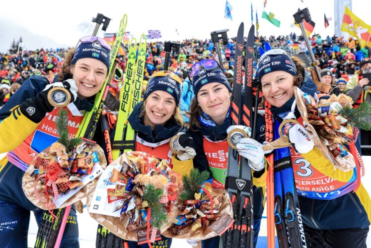 Die Schwedinnen gewinnen die Staffel beim Biathlon Weltcup in Antholz. In einem harten Kampf beim Zieleinlauf stürzte Ingrid Landmark Tandrevold und überquerte die Ziellinie als enttäuschte Zweite. Bronze sicherten sich die Französinnen und die Schweiz erreichte einen hervorragenden vierten Platz. Die ersatzgeschwächte deutsche Staffel wurde Achte.