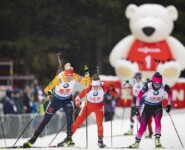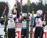 An der Spitze wurde zwischen Tiril Eckhoff, Olena Pidrushna und Anais Bescond taktiert, sie wechselten sich in der Führungsarbeit ab, Denise Herrmann saugte sich an die Russin Kristina Reztsova heran und machte Zeit auf die Spitze gut, die sie dann mit zwei Nachladern wieder einbüßte. Vorne hielt sich weiterhin das Trio aus Frankreich, Norwegen und der Ukraine, Denise Herrmann zog an der Russin vorbei an die vierte Position. Die Windfahnen genau im Blick kamen die drei Führenden zum entscheidenden Schießen, Tiril Eckhoff räumte als Erste alle fünf Scheiben ab und ging auf die Schlussrunde gefolgt von Frankreich. Olena Pidrushna reichten die Nachlader nicht aus, sie musste in die Runde, aber Denise Herrmann konnte die gebotene Chance nicht nutzen. Auch ihr blieben nur noch zwei Patronen für zwei Scheiben, aber sie hat getroffen. Reztsova lief auf Rang drei aus dem Schießstand, hinter ihr Pidrushna und mit 12 Sek. Rückstand auf das Podest nahm Denise Herrman als fünfte die Verfolgung auf. Mit der absolut schnellsten Laufzeit in der letzten Runde holte sich Herrmann am letzten Anstieg erst die Russin und im Zielsprint schob sie sich auch noch an Pidrushna vorbei. Mit überragender Laufform rettete sie der deutschen Staffel das Podest. Nach dem Rennen sagte sie: „Das war eine furiose Schlussrunde. Ich wusste schon vom Anschießen her, dass es nicht einfach wird und ich habe versucht, die Scheiben so schnell wie möglich zu treffen, dass ich nicht zu viel Boden verliere und auf meine Endschnelligkeit kann ich vertrauen.“
