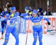 Franziska Preuss zeigte sehr gute Leistung auf der Strecke und nach sicheren Treffern im Liegendanschlag hatte sie sich um fünf Plätze nach vorne gearbeitet. Stehend ging Preuß großes Risiko, zwei Scheiben blieben schwarz aber nach zwei schnellen Nachladern machte sie sich auf ihre Schlussrunde und übergab an zehnter Position auf Denise Herrmann. „Ich habe schon das Ziel gehabt, dass wir wieder Anschluss finden“, so Preuß nach dem Rennen, und weiter „ich bin mit meinem Rennen soweit ganz zufrieden. Ich habe auf der Strecke alles gegeben, wir hatten heute wirklich gutes Material und ich habe geschaut, dass ich den Rückstand verkleinere und Platzierungen gut mache und ich denke, das ist mir gut gelungen.“ Denise Herrmann, Olympiasiegerin im Einzel von Peking, überzeugte läuferisch und auch am Schießstand. Den Liegendanschlag zog Herrmann sauber durch und während das Podest mit Norwegen, Schweden und Italien vergeben war kam Denise Herrmann als erste Verfolgerin nach nur einem Nachlader im letzten Schießen auf die Schlussrunde. Nach zwei Strafrunden und neun Nachladern brachte sie die deutsche Damenstaffel auf dem vierten Platz ins Ziel, gefolgt von den Schweizerinnen mit Elisa Gasparin, Lena Häcki, Aita Gasparin und Selina Gasparin (1 Strafrunde/12 Nachlader). Österreich mit Dunja Zdouc, Lisa Theresa Hauser, Anna Juppe und Julia Schwaiger erreichten nach zwei Strafrunden und elf Nachladern Rang sechs. Zu den zuletzt laut werdenden Gerüchten über einen eventuellen Rücktritt aus dem Leistungssport angesprochen meinte Denise Herrmann: „Darauf wurde ich in der letzten Woche öfters angesprochen. Meine Karriere werde ich beenden, wenn ich für mich einen runden Zeitpunkt erwische.“ „Am Ende des Tages hat uns ein Schießen die Podiumsplatzierung nicht ermöglicht. Das wäre unter den Voraussetzungen doch mit einigen fehlenden Staffeln schon unser Anspruch gewesen heute“, so das Fazit von Bernd Eisenbichler, Sportlicher Leiter Biathlon beim DSV.