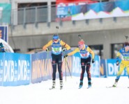 Einmal mehr wurde Benedikt Doll auf Rang 11 bester Deutscher. Doll, Erik Lesser und auch Roman Rees stiegen mit zwei Fehlschüssen im ersten Liegendanschlag ins Rennen ein und gerieten dadurch bereits ins Hintertreffen. Johannes Kühn und Philipp Horn absolvierten den ersten Anschlag zwar noch fehlerfrei, aber auch bei ihnen summierten sich die Fehlschüsse im Verlaufe des Rennens. Obwohl alle fünf deutschen Starter im letzten Anschlag im Stehen zeigten, dass sie auch fehlerfrei schießen können, dürfte es mit dem Schießtrainer des deutschen Teams, Englbert Sklorz, einiges aufzuarbeiten geben. Am Ende konnte sich keiner aus der Mannschaft von Mark Kirchner entscheidend nach vorne bzw. in die Top-10 arbeiten. „Das war ein richtig hartes Rennen; der Schneefall hat es richtig langsam gemacht und es tat schon richtig weh. Aber es war für jeden gleich,“ so Benedikt Doll nach dem Rennen, und angesprochen auf die ersten beiden Fehler meinte er „ja, das regt mich echt richtig auf, total nicht die Konzentration hochgezogen beim Schießen und so leichtsinnig die zwei Fehler geschossen. Ich krieg heut sicher noch eines aufn Deckel vom Englbert, unserem Schießguru. Aber die zweite Runde ist man dann halt gleich hinten und man versucht das Beste draus zu machen. Ich glaub, das habe ich noch ganz gut hingekriegt, aber die Chance nach ganz vorne ist halt weg“. Mark Kirchner meinte: „Das kann schon mal passieren. Das war natürlich kein guter Einstieg, gerade bei den guten Verhältnissen am Schießstand und wenn man das nicht schafft dort dabei zu sein, wie der Erik und der Benni, die vorne platziert waren, dann hat sich das für das Rennen um sich zu verbessern, fast schon erledigt.“ Die Staffelaufstellung gab der Bundestrainer dann auch bereits bekannt. Die deutsche Herrenstaffel wird ohne Arnd Peiffer in der Aufstellung Erik Lesser, Roman Rees, Benedikt Doll und Philipp Horn starten. „Unsere Zielstellung ist wie immer das Podium“, so Mark Kirchner.
