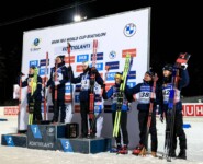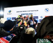 Je höher die Startnummern beim Zieleinlauf wurden umso öfter wechselte der Erstplatzierte. Als Sturla Holm Laegreid mit deutlichem Vorsprung ins Ziel lief, dem mit zwanzig Treffern am Schießstand das perfekte Rennen gelang, übernahm er die Führung. Ebenso perfekt mit zwanzig Treffern war sein Teamkollege Endre Stroemsheim unterwegs, allerdings agierte er sowohl am Schießstand als auch läuferisch schneller und setzte sich mit 24,2 Sekunden Vorsprung an die Spitze. Und dann kam Johannes Thingnes Boe ins Rennen und egalisierte erwartungsgemäß die vorher angezeigten Laufzeiten. Mit einem Fehler belastet kam er zum entscheidenden Schießen und sortierte sich zwischen seine Teamkollegen Endre Stroemsheim und Sturla Holm Laegreid ein. Der Abstand nach vorne betrug 7,8 Sekunden bei Schießstandausfahrt und bei der nächsten Zwischenzeit hatte er den Rückstand bereits halbiert. 600 Meter vor dem Ziel waren es noch 3,3 Sekunden und dann kam für ihn das Ziel genau drei Sekunden zu früh. Er sortierte sich mit der schnellsten Gesamtlaufzeit hinter seinem Landsmann Endre Stroemsheim auf dem zweiten Platz ein und verdrängte Laegreid auf den dritten Rang. „Es war aufregend, ich dachte ich muss Sturla (Laegreid) schlagen und dann musste ich auf Johannes warten,“ so Endre Stroemsheim nach dem Rennen im ARD-Interview. „Auf dem Hügel hatte er drei Sekunden und ich hatte ein gutes Finish, da dachte ich, es wird reichen.“ Endre Stroemsheim wird im Sprint am Freitag Träger des gelben Trikots sein, das ihm schon bei der Siegerehrung übergestreift wurde.