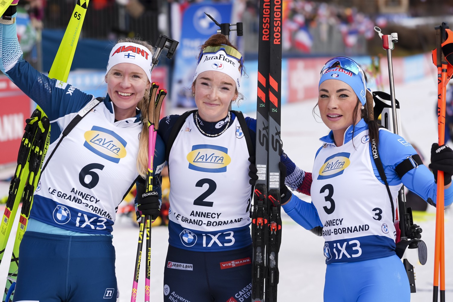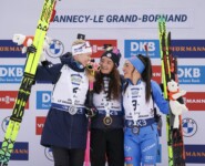 Frenetisch angefeuert von den französischen Biathlon-Fans jubelte Lou Jeanmonnot in der Verfolgung über ihren zweiten Saisonsieg. Suvi Minkkinen wurde Zweite vor Dorothea Wierer.