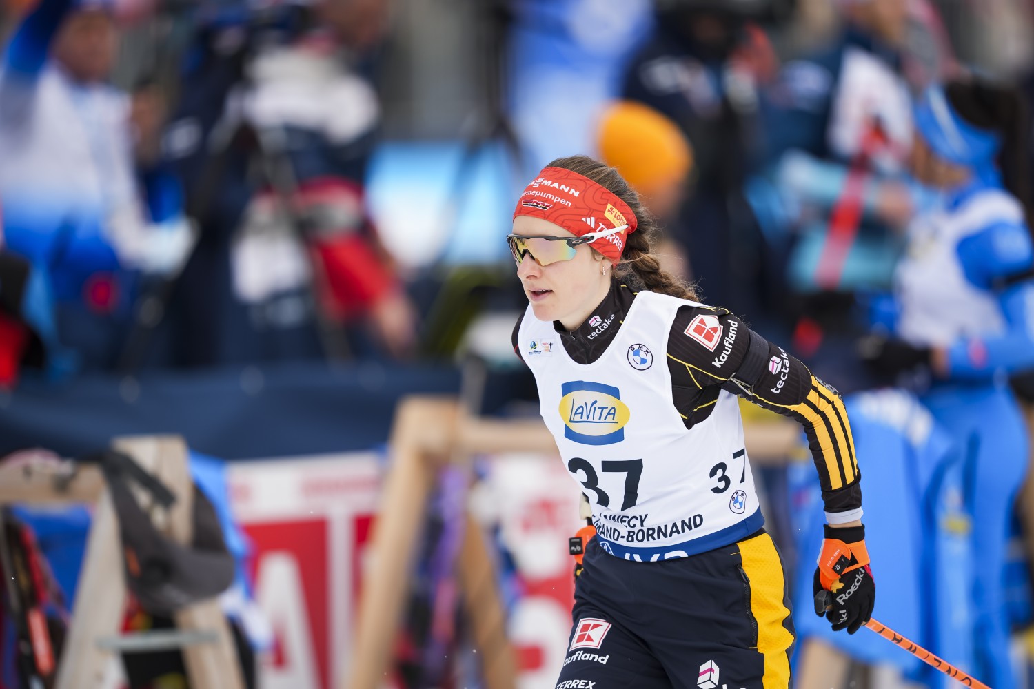 Beste Deutsche wurde Franziska Preuß als Elfte. Grundlage dessen waren vier perfekte Schießeinlagen, während sie gleichzeitig mit dem Material haderte und im Zielraum auf Nachfrage antwortete: „Ich habe keinen Ski gehabt.“ Insgesamt blickt die Zollbeamtin aber zufrieden auf den Wettkampf zurück, auch wenn sie nach dem letzten Schießen noch Achte war und vor Hauser, Braisaz-Bouchet und Elvira Öberg lag, die auf der Schlussrunde noch an ihr vorbeizogen. „Viermal Null ist das Wichtigste“, sagte die 31-Jährige im ZDF und fügte hinzu: „Aber auf der Strecke ging es sehr sehr zäh. Wir haben heute nicht das beste Material gehabt. Aber das muss man dann einfach akzeptieren. Es war zwar zäh, aber mit Platz elf bin ich schon zufrieden. Ich bin in Runde drei und vier etwas kontrollierter gelaufen, damit mir am Ende nicht die Kraft ausgeht. Aber die Laktatverträglichkeit ist noch nicht da. Nach der Krankheit ist das Ergebnis okay, aber es muss schon noch mehr kommen. Ich weiß noch nicht, ob ich morgen dabei bin, aber ich würde gerne laufen“, sagte Franziska Preuß, die vom ZDF erfährt, dass sie erste Reserve für den morgigen Massenstart ist und somit vermutlich noch ins Starterfeld hineinrutschen wird.