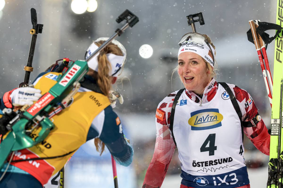 Lisa Theresa Hauser aus Österreich setzt sich mit einer starken Schlussrunde gegen Suvi Minkkinen durch und gewinnt das Verfolgungsrennen der Damen beim Biathlon Weltcup in Östersund. Die Schwedin Anna Magnusson komplettiert das Podest und Vanessa Voigt wird nach zwanzig Treffern beste Deutsche auf Rang zehn.