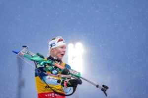 Die Thüringerin Vanessa Voigt hat zwanzig Schüsse ins Ziel gebracht und auch in der Spur war sie gut unterwegs. Mit der fünften Netto-Laufzeit war sie unter den deutschen Damen die Schnellste und lag nur 35,3 Sekunden hinter der Bestzeit von Hanna Oeberg. Von Platz 32 hat sich Voigt in jeder Runde weiter nach vorne gearbeitet und im entscheidenden Schießen die Nerven unter Kontrolle gehabt. Am Ende ist sie auf Rang zehn beste Deutsche und hat die halbe Olympiaqualifikation erfüllt. „Ich würde sagen ich bin rundum zufrieden mit dem ganzen Wettkampf. Ich habe beim Anschießen gemerkt, dass es heute flutscht.“ Auf die äußeren Bedingungen beim Schießen angesprochen meinte Voigt: „Natürlich hat es auch mit den äußeren Bedingungen zu tun, wenn ich Wind habe, wird es schwerer. Aber es ist natürlich auch eine Kopfsache.“ Voigt war glücklich darüber, dass ihre Leistungskurve deutlich nach oben zeigt. „Ich habe gesehen, dass es hinhaut, dass ich meine Trainingsleistung im Wettkampf bestätigen kann.“ Während des Wettkampfs regnete es erst leicht, dann ging der Regen in leichten Schneefall über. Zu diesen Verhältnissen meinte Voigt: „Tatsächlich war ich sehr froh über die Bedingungen. Es war fest und kompakt und nicht so tief wie die letzten Tage.“