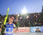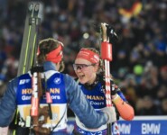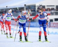 Justine Braisaz-Bouchet baute erwartungsgemäß ihren Vorsprung auf der ersten Runde aus, Norwegen zog an Österreich vorbei und die Französin verfehlte drei Scheiben, obwohl der Wind zu diesem Zeitpunkt komplett nachgelassen hat. Von ihrem einminütigen Vorsprung blieben noch 38,6 Sekunden auf die Norwegerin Femsteinevik. Aber sie ging trotzdem vom Schießstand weg, bevor die anderen sich bereit machten. Femsteinevik hat mit einem Nachlader die zweite Position gehalten, dann folgte Tamara Steiner und Elisa Gasparin. Sophia Schneider benötigte ihre drei Nachlader für eine Scheibe und nahm die nächste Runde als Fünfte mit einem Abstand von circa 20 Sekunden zum Podest in Angriff. Zum Stehendanschlag war die Deutsche laufstark an Gasparin und Steiner vorbeigezogen und wieder auf den dritten Rang vorgelaufen. Justine Braisaz-Bouchet schoss mit Tempo, den letzten vorbei, aber mit einem Nachlader wurde auch diese Scheibe weiß. Femsteinevik musste ein Mal nachladen, Schneider traf auch mit dem ersten Nachlader und war Dritte als sie aus dem Schießstand in ihre letzte Runde einbog 19,3 Sekunden hinter der Norwegerin auf dem zweiten Rang. „Die Staffel war nicht die leichteste für mich, nach dem nicht so guten Rennen bei der WM,“ sagte Sophia Schneider nach dem Rennen, und dass sie froh sei, dass sie es so über die Bühne gebracht hat.