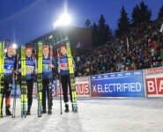 Lou Jeanmonnot, Oceane Michelon, Justine Braisaz-Bouchet und Julia Simon gewinnen mit der Damenstaffel in Nove Mesto. Das Quartett benötigte nur fünf Nachlader und hat sich mit dem Sieg auch den Gesamtsieg in der Staffelwertung gesichert. Rang zwei auf dem Podest gehört den Norwegerinnen Karoline Offigstad Knotten, Ingrid Landmark Tandrevold, Ragnhild Femsteinevik und Maren Kirkeeide (11 Nachlader). Das junge deutsche Staffelteam mit Johanna Puff, Julia Tannheimer, Sophia Schneider und Selina Grotian bewies Kampfgeist und Nervenstärke und erreichte nach acht Nachladern Rang drei. Dahinter reihte sich die Schweiz (8 Nachlader) mit Amy Baserga, Aita Gasparin, Elisa Gasparin und Lena Häcki-Groß ein. Die Österreicherinnen Lea Rothschopf, Lisa Theresa Hauser, Tamara Steiner und Anna Juppe belegten nach einer Strafrunde und zehn Nachladern Platz fünf. Die Schwedinnen Johanna Skottheim, Anna Magnusson, Sarah Andersson und Hanna Oeberg, zuvor führend in der Staffelwertung, hatten zwei Strafrunden und 15 Nachlader im Gepäck und erreichten das Ziel auf Rang sechs.