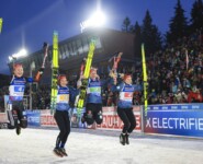 Für Frankreich kam Julia Simon als Schlussläuferin mit einem Vorsprung von 46,2 Sekunden auf Norwegen mit Maren Kirkeeide. Selina Grotian übernahm als Dritte 25,7 Sekunden hinter Norwegen. Nach Deutschland wechselte die Schweiz auf Lena Häcki-Groß und Österreich auf Anna Juppe. Julia Simon hielt die Führung nach dem Liegendanschlag, Kirkeeeide kam ohne Nachlader aus und Selina Grotian benötigte zwei Nachlader für eine Scheibe, wonach der Abstand zu der Norwegerin minimal wuchs. Dennoch kamen die Schweiz und Österreich auf den Plätzen vier und fünf nicht näher an Deutschland heran. Simon kam zum letzten Anschlag 43,3 Sekunden vor Kirkeeide und vollendete mit fünf Treffern und mit Grüßen ins Publikum was die drei Mädels vor ihr begonnen haben. Maren Kirkeeide ließ die letzte Scheibee stehen, machte es noch einmal spannend, als auch der erste Nachlader vorbeiging. Mit dem zweiten traf sie, bevor Selina Grotian blitzschnell alles riskierte und fünf Treffer folgen ließ. „Ich bin bei mir geblieben, im Tunnel gewesen und dann hat alles funktioniert,“ so Grotian in der ARD. 12,5 Sekunden betrug der Rückstand von Deutschland auf Norwegen eingangs der Schlussrunde. Lena Häcki-Groß verließ den Schießstand als Vierte, Österreich und Tschechien und auch Oeberg mussten in die Strafrunde, Österreich kam auf Rang fünf zurück und dann Hanna Oeberg für Schweden. Selina Grotian lief eine starke Schlussrunde, aber auch Kirkeeide vor ihr ließ nicht nach und so blieb es bei Silber für Norwegen und Selina Grotian brachte die deutsche Staffel auf dem Bronzerang ins Ziel.
