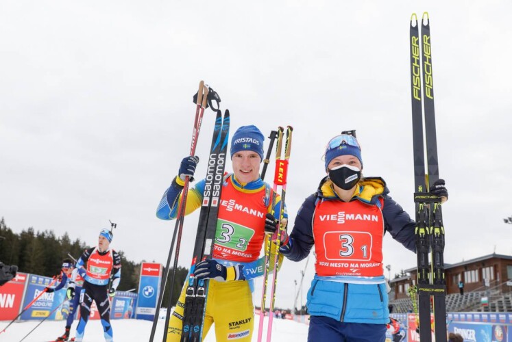 Dass sich das komplette schwedische Trainerteam nach dem positiven Corona-Test von Mattias Nilsson in Quarantäne befindet hat die Leistung der Athleten, die von Teamkameraden an der Strecke und am Fernglas betreut wurden, nicht beeinträchtigt. Linn Persson und Sebastian Samuelsson haben sich gleich zu Beginn des Rennens gut positioniert, fielen durch drei Nachlader im stehenden Anschlag von Persson leicht zurück, was Samuelsson rasch aufholte. Zum entscheidenden Schießen kamen er und der Norweger Sturla Holm Laegreid zeitgleich. Der Norweger blieb fehlerfrei, Samuelsson musste einmal nachladen, agierte aber insgesamt etwas schneller am Schießstand und ging 5 Sek. hinter Laegreid auf die Schlussrunde, hat aber auf der kurzen 2-km-Runde schnell zum Norweger aufgeschlossen. Samuelsson hielt sich bis zur Stadioneinfahrt im Windschatten und setzte daraus auf der Ziellinie einen bärenstarken Sprint an, bei dem der norwegische Überflieger nicht mehr mithalten konnte. Linn Persson und Sebastian Samuelsson gewannen die Single Mixed Staffel nach 7 Nachladern nur 1,5 Sek. vor dem norwegischen Team mit Ingrid Landmark Tandrevold und Sturla Holm Laegreid (6 NL). Den dritten Platz belegte überraschend das Team aus den USA mit Susan Dunklee und Sean Doherty (7 NL).