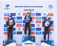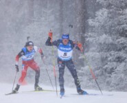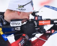 Bester aus dem Team von Mark Kirchner wurde Johannes Kühn auf Platz vier. Mit einer unfassbaren Schlussrunde trennten Johannes Kühn nur 3,5 Sek. vom Podest. Nach dem letzten Schießen waren es noch um die 20 Sek., die der Deutsche auf den letzten 3,3 km nahezu komplett kompensierte. Johannes Kühn zeigte sich nach dem Rennen zufrieden mit seiner Leistung. „Für die Bedingungen und für das erste Rennen nach Weihnachten, was ja ein kleiner Neustart ist, bin ich zufrieden.“ Roman Rees ging mit der späten Startnummer 89 ins Rennen, lag nach einer Strafrunde nach dem ersten Schießen im Mittelfeld mit knapp 50 Sek. Rückstand auf die Spitze. Bei allgemein längeren Schießzeiten räumte er stehend in nur 21 Sekunden alle Scheiben ab und lag eingangs der Schlussrunde plötzlich im Podestbereich. Die Ziellinie überquerte er 1,6 Sek. hinter Johannes Kühn auf dem fünften Rang. „Die Bedingungen auf der Runde waren in Ordnung, auch über das ganze Rennen gesehen und gerade beim Stehendanschlag kam ich mit dem Wind gut zurecht“, sagte ein zufriedener Roman Rees, der damit auch die Olympianorm erfüllt hat. Dies gelang auch Erik Lesser. Er platzierte sich nach insgesamt drei Strafrunden auf Rang 15 und lieferte damit den erforderlichen zweiten Teil der Norm. Nach dem Rennen richtete er ein großes Lob an die Skitechniker. „Ich war sehr skeptisch, als ich den Schliff gesehen habe, aber das war der Grundstein für das Laufen heute.“ Dass ihm im stehenden Anschlag auf Bahn 30 mit seiner Meinung nach beherrschbaren Windbedingungen zwei Fehler unterliefen ärgerte ihn, aber dass er läuferisch mit dem jungen Norweger Sturla Holm Laegreid mithalten konnte stimmte ihn wieder versöhnlicher. Der für Philipp Horn ins Team gekommene Lucas Fratzscher belegte nach zwei Strafrunden Rang 22, Benedikt Doll kassierte vier Runden und kam auf Rang 38. Auch Philipp Nawrath hat mit fünf Fehlern und einem Rückstand von 2:04,8 Min. auf Platz 51 die Verfolgung erreicht.