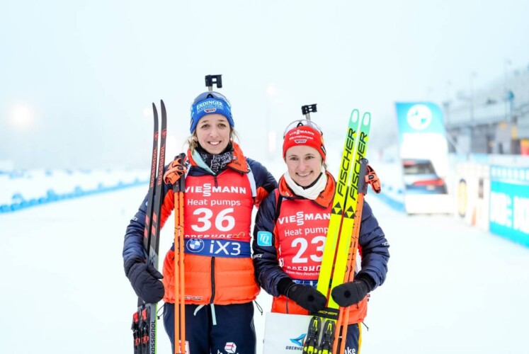 Die Französin Lou Jeanmonnot hat das gelb-rote Trikot über den Jahreswechsel gehalten. Sie führt in der Gesamt- und auch in der Sprintwertung, nachdem sie im Sprint in Hochfilzen siegte und in Annecy Zweite war. Im Sprint von Oberhof kam sie schon mit Rückstand zum zweiten Anschlag, leistete sich eine Strafrunde und konnte nach der Strafrunde nicht mehr in den Kampf um einen Podestplatz eingreifen. Sie erreichte mit einem Rückstand von 54,9 Sekunden Rang sieben hinter den beiden Deutschen. Dennoch bleibt sie sowohl in der Gesamtweltcupwertung in Führung, als auch in der Sprintwertung.