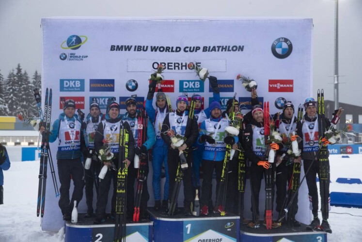 Beim Heimweltcup in Hochfilzen hat es für die Österreicher nicht geklappt. Knapp schrammten sie als Viertplatzierte am Podest vorbei. In Oberhof haben Tobias Eberhard, Simon Eder, Dominik Landertinger und Julian Eberhard es besser gemacht. Mit sieben Nachladern und ebenfalls einer Strafrunde überquerte Julian Eberhard als Drittplatzierter die Ziellinie. Den Grundstein für die Podestplatzierung setzte Julian Eberhard als er den Norweger neben sich im stehenden Anschlag während der Schießeinlage überholte und den Norweger dadurch unter Druck setzte, der dann auch prompt eine Strafrunde kassierte. Obwohl Julian Eberhard auf der Schlussrunde stürzte und dabei sein Gewehr zerbrach, brachte er den dritten Rang für sein Team ins Ziel.