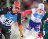„Das ist nicht ganz das, was ich mir erhofft habe,“ resümierte Philipp Nawrath nach dem Verfolgungswettkampf der Herren, wo er auf Rang 16 als bester Deutscher notiert wird. Die zweite Gesamtlaufzeit, nur 1,9 Sekunden hinter dem Norweger Johannes Thingnes Boe führte nach insgesamt vier Strafrunden nicht zum Erfolg. „Es ist ein solides Ergebnis mit elf Plätzen nach vorne,“ so Nawrath weiter, der angibt, dass es nicht so „easy“ ist, die Emotionen im Griff zu haben. „Man weiß mit einem guten Schießergebnis kann es ganz nach vorne gehen. Da hat man ein bißchen Respekt davor.“ Obwohl die deutschen Herren es in dieser Saison bereits zeigten, dass auch sie in der Lage sind, mit Null Fehler vom Schießstand zu gehen, klappt es derzeit, vor allem beim Heimweltcup in Oberhof, nicht. „Es sind kleine Bewegungen, die zu Fehler führen. Mit dem Hintergedanken, dass man treffen muss, wäre ausblenden vielleicht besser. So: Nix muss, alles kann.“ Hinter Nawrath platzierte sich Justus Strelow. Er hat zwar mit nur einem Fehlschuss wieder zu seiner Schießstärke gefunden, kann aber auf der Strecke nicht dagegen halten. „Ich habe versucht in den ersten beiden Runden mitzugehen und das habe ich dann in der vierten und fünften Runde gebüßt. Mit einem Fehler bin ich soweit zufrieden, aber klar hätte man sich vorgestellt ein paar Plätze nach vorne gut zu machen,“ so Strelow nach dem Rennen. „Ich merke, dass ich für die ganz langen Berge nicht gemacht bin und dass es mir da fehlt. Oberhof war vom Streckenprofil noch nie meine Parade.“ Auf Platz 25 kam Danilo Riethmüller nach vier Extrarunden ins Ziel und Johannes Kühn (3 Fehler) belegte Platz 29. Mit sieben Fehlern war für Simon Kaiser keine Verbesserung nach vorne möglich, er belegte Rang 44 vor Philipp Horn, der mit drei Fehlern im ersten Anschlag begann und in der Folge drei weitere Extrarunden kassierte.