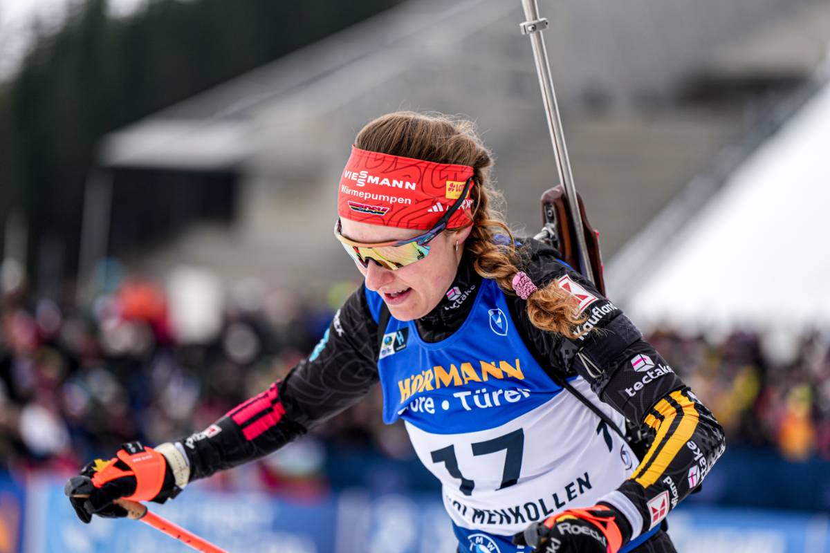 Nach drei fehlerfreien Schießen und zwei Fehlern im letzten, entscheidenden Anschlag wurde Janina Hettich-Walz mit einem Rückstand von 50 Sekunden Zehnte und damit beste Deutsche. Die Saison beendet Hettich-Walz als 17. in der Gesamtweltcupwertung. „Ich war heute ziemlich klar im Kopf,“ sagte Hettich-Walz am ZDF-Mikrofon nach dem Rennen. „Ich war verwundert über die Fehler. Ich war mir sicher, dass die treffen. Irgendwie soll es diese Saison nicht sein.“ Hier gab die Schwarzwälderin auch bekannt, dass sie überlegt habe, ob sie noch weitermacht. „Ich bin nächstes Jahr noch dabei.“ Vanessa Voigt kassierte insgesamt zwei Strafrunden und überquerte die Ziellinie auf Rang zwölf. Sie beendet die Saison als beste Deutsche auf dem 14. Platz der Gesamtweltcupwertung. Julia Tannheimer begann mit zwei Strafrunden, blieb in den folgenden drei Schießen fehlerfrei und erreichte das Ziel als 14. „Ich bin vor allem echt happy, dass es beim Schießen so gut funktioniert hat. Ich habe schlecht geschlafen und wusste, dass es läuferisch heute schwierig wird. Die Schlussrunde hat mir gestern mehr Körner gekostet.“ Ihr Ziel ist es in der kommenden Saison immer öfter zu schaffen, „auf so hohem Niveau zu laufen.“ Selina Grotian (1:0:3:0) wurde 24. Läuferisch war Vanessa Voigt aus dem DSV-Team die stärkste, Julia Tannheimer war schnellste aus dem DSV-Team in der letzten Runde.