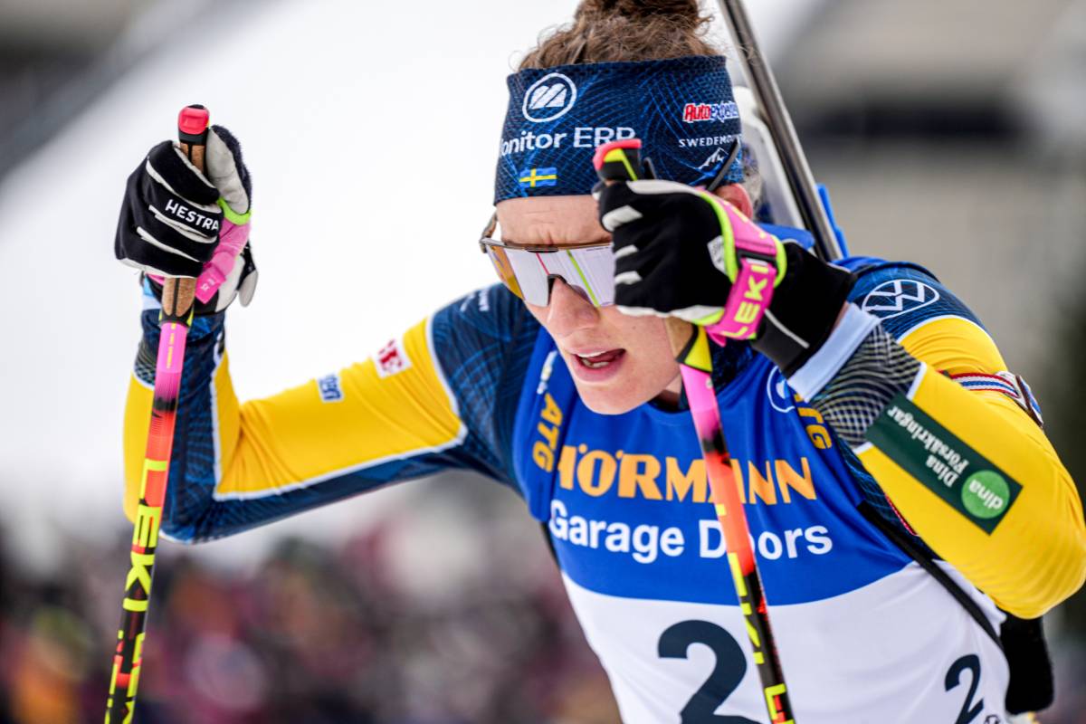 Unter großem Beifall der Zuschauer im Stadion reihten sich Hanna Oeberg und Elvira Oeberg auf. Elvira Oeberg ist die bessere Stehendschützin der beiden, aber sie verfehlte zwei Scheiben und ihre Schwester eine. Auch Hettich-Walz kassierte zwei Extrarunden. Währenddessen die Verfolgerinnen auch kreiselten kam Hanna Oeberg aus der Strafrunde zurück und mit einem Vorsprung von 8,6 Sekunden vor Lisa Vittozzi bog sie in die Schlussrunde ein. An dritter Position war Tereza Vobornikova und 7,3 Sekunden danach Ingrid Landmark Tandrevold. Janina Hettich-Walz hat ihre hervorragende Position durch die zwei Strafrunden vergeben und mit 45,1 Sekunden Rückstand war sie bei Schießstandausgang Zehnte. Julia Simon kassierte auch nochmals eine Strafrunde und mit 33,2 Sekunden Rückstand lief sie als Siebte in die letzte Runde. Sie hatte die in der Spur extrem starke Elvira Oeberg vor sich und insofern durfte es schwer werden, ob sie die 2,9 Sekunden aufholen und an Elvira Oeberg vorbeiziehen kann um Sechste zu werden.