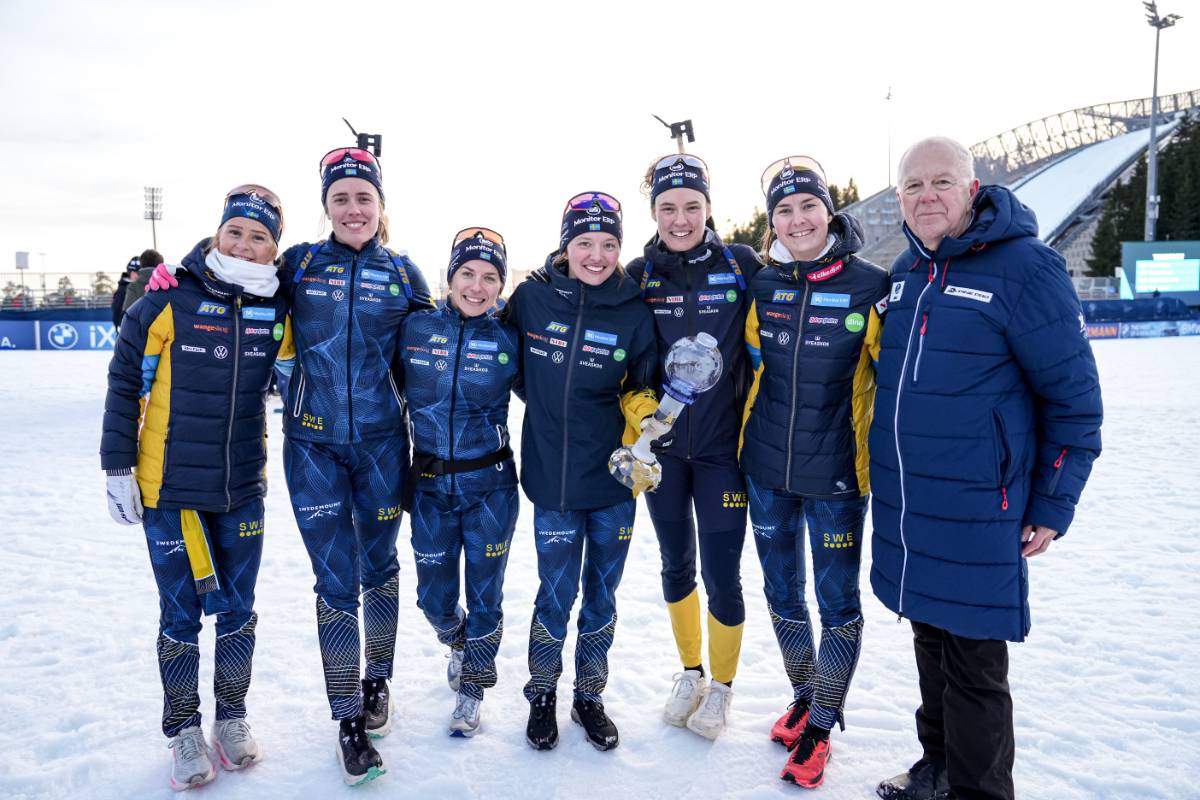 Am Holmenkollen war heute der Tag der Schwedinnen. Sie haben im Sprint eine bemerkenswerte Teamleistung vollbracht, den Rückstand von fünf Punkten zu Frankreich locker aufgeholt und schließlich die Nationenwertung der Damen in der Saison 2025/26 gewonnen. Zur kleinen Kristallkugel kommt ein Scheck an den Verband über 60.000 Euro. „Wir haben eine tolle Teamleistung heute abgeliefert und wir wussten zuvor, dass wir um den Nationencup laufen und das hat sich ausgezahlt,“ freute sich Hanna Oeberg am ZDF-Mikrofon. Hanna Oeberg gewinnt den Sprint in Oslo mit 5,3 Sekunden Vorsprung vor Lisa Vittozzi. Hanna Oeberg hat damit nach Ruhpolding und Annecy den dritten Sprintsieg in der Saison erreicht. „Ich glaube dieses Jahr kann man mich eine Sprintspezialistin nennen. Ich habe versucht das zu trainieren, auch was den Schießstand angeht. Ich denke nicht so viel und es hat sich super angefühlt,“ so Hanna Oeberg nach dem Rennen, die auch angab, dass die Strecken am Holmenkollen zu ihren Lieblingsstrecken zählen. „Natürlich gibt es auch andere tolle Wettkampfstrecken, aber ich liebe diese Strecke und ich habe immer noch viel Energie und die Form ist noch gut.“ Elvira Oeberg wird Dritte und hatte 20,1 Sekunden Rückstand auf ihre Schwester. Alle drei Podestplatzierten blieben am Schießstand fehlerfrei. Neben den Oebergs platzierte sich Anna Magnusson auf dem siebten Platz (0:0) vor Anna-Maria Heijdenberg (0:0) auf Rang acht. Linn Gestblom sicherte sich mit zehn Treffern den neunten Platz. Das ganze Team freute sich mit ihren Trainern, als sie mit der kleinen Kristallkugel geehrt wurden.