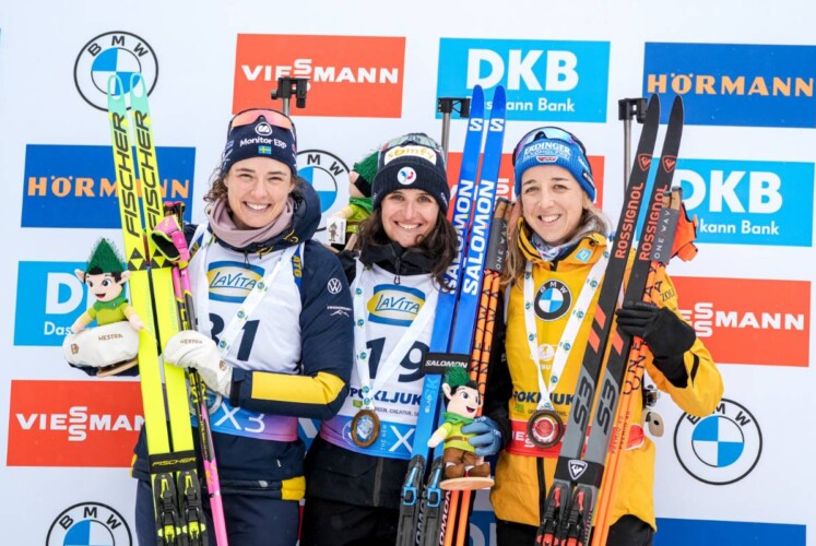 Neben dem Sieg von Julia Simon haben sich alle weiteren vier Französinnen am Ende in den Top-10 platziert. Oceane Michelon wurde Fünfte vor Justine Braisaz-Bouchet auf Rang sechs und eben Lou Jeanmonnot auf dem siebten Rang. Jede von ihnen leistete sich zwei Fehlschüsse. Jeanne Richard landete am Ende auf dem zehnten Rang. Sie war im blauen Trikot der besten Athletinnen unter 23 Jahren unterwegs, konnte es mit dieser Platzierung nicht verteidigen und muss es an Oceane Michelon abgeben. Selina Grotian, die ja auch noch in den Kampf um diesen Gesamtsieg eingreifen kann, landete auf der Pokljuka auf dem 15. Platz und ist damit auf 49 Punkte an Michelon herangerückt. Die 20jährige Deutsche erreichte damit hinter Preuß das zweitbeste DSV-Ergebnis. „Es war sehr schwierig, sehr langsam heute. An den Anstiegen konnte man nicht so richtig abdrücken, ich habe das Beste daraus gemacht, denn bei den Bedingungen tue ich mich schon schwer,“ so Grotian nach dem Rennen im ZDF. Sie gab auch zu, dass sie eher damit gerechnet hat, dass der Wettkampf gar nicht stattfindet. „Ich bin davon ausgegangen, dass es nicht stattfindet, so wie es durchgeregnet hat.“