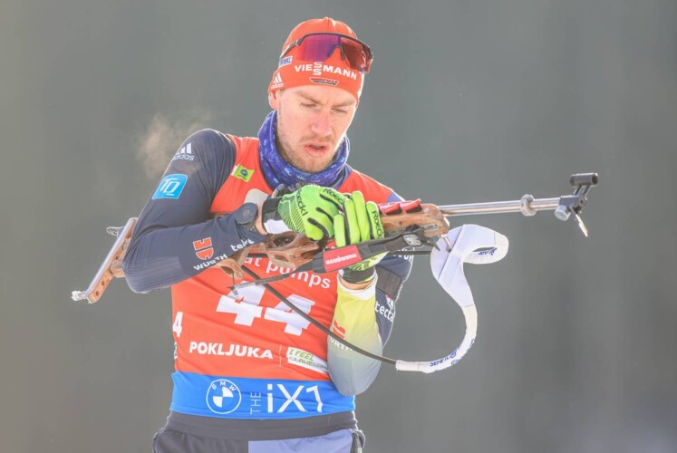 Bei Benedikt Doll und Philipp Horn ging es gleich nach dem ersten Schießen nach hinten. Doll mit zwei Schießfehlern wurde ins Mittelfeld und Horn gar mit vier Schießfehlern an das Ende des Feldes gespült. Rees, Strelow und Kühn haben die erste Schießeinlage fehlerfrei absolviert. Rees hatte nach einer Strafrunde aus dem zweiten Schießen Niklas Hartweg an den Skienden, der im Liegendanschlag jeweils sauber abräumte. Benedikt Doll brachte in der Folge zwei Mal die Null und kassierte im entscheidenden Schießen eine weitere Strafrunde. Am Ende platzierte er sich als bester Deutscher auf Rang elf, knapp hinter Niklas Hartweg, der nach zwanzig Treffern erneut ein Top-10-Ergebnis brachte. In der Gesamtweltcupwertung liegt Hartweg mittlerweile auf Platz 14. Neben ihm blieb auch Johannes Kühn komplett fehlerfrei. Dadurch gelang ihm eine sensationelle Aufholjagd. Um 32 Plätze verbessert kam er schließlich hinter Benedikt Doll als Zwölfter ins Ziel. Im ZDF-Interview freute er sich über das perfekte Schießergebnis und gab zu, dass er schon am zweifeln war, weil es bisher im Wettkampf nicht klappte. „Ich habe mir vorgenommen, es besser zu machen als gestern, was nicht so schwierig war. Ich habe heute eher das Gefühl gehabt, es geht wie von alleine. Vielleicht war es heute aber einfach Glück.“ Johannes Kühn hatte auch die beste Nettozeit und lag in der Gesamtlaufzeit nur 20 Sek. hinter Johannes Thingnes Boe. Bei Roman Rees fielen insgesamt drei Scheiben nicht und am Ende bedeutete dies Rang 15 für ihn. Auch Justus Strelow konnte sich gegenüber seiner Platzierung im Sprint in der Verfolgung nicht verbessern. Nach tadellosen Liegendschießen fielen stehend erst zwei und dann drei Scheiben nicht und mit fünf Strafrunden musste er sich mit Platz 51 zufrieden geben. Und Philipp Horn hatte einen gebrauchten Tag erwischt. Nach vier Fehlern im ersten Anschlag folgten drei weitere Strafrunden. Er hatte dadurch über einen Kilometer mehr zu laufen und beendete das Rennen auf Rang 54.
