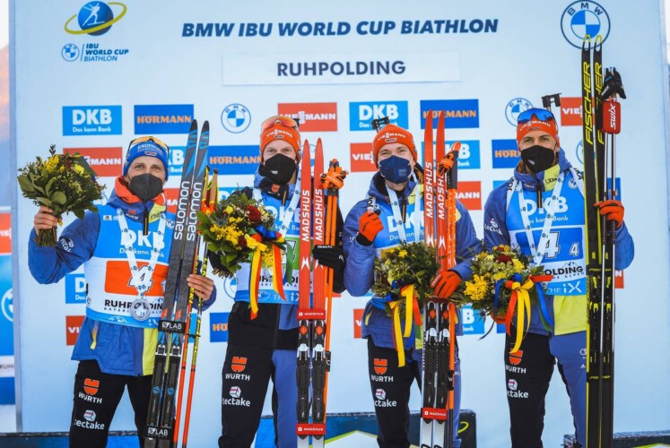Zwei Staffelwettkämpfe fanden bisher in der laufenden Saison statt und sowohl in Östersund als auch in Hochfilzen siegte Norwegen vor Frankreich und Russland. Das deutsche Team landete beide Male neben dem Podest auf Rang vier. Während Norwegen in Ruhpolding eine an allen vier Positionen veränderte Staffel an den Start schickte, haben Frankreich und Russland nur eine Position verändert. Bei den Franzosen nahm Eric Perrot den Startplatz von Simon Desthieux ein und bei den Russen ersetzte Maxim Tsvetkov den sich nach seiner Corona-Infektion noch in Quarantäne befindlichen Eduard Latypov. Mit sieben Nachladern gewann in Ruhpolding das russische Quartett mit Said Karimulla Khalili, Daniil Serkhvostov, Alexandr Loginov und Maxim Tsvetkov. Mit insgesamt nur zwei Nachladern und einer grandiosen letzten Runde kam der deutsche Schlussläufer auf Sichtweite an den Führenden heran und halbierte den Vorsprung auf Maxim Tsvetkov. Mit nur 7 Sek. Rückstand wurden Erik Lesser, Roman Rees, Benedikt Doll und Philipp Nawrath Zweiter und erreichten mit der Staffel erstmals in dieser Saison eine Podestplatzierung. Sechzehn Sekunden dahinter sicherte Anton Smolski für Weissrussland (mit Mikita Labastau, Dzmitry Lazouski, Maksim Varabei) den dritten Rang. Die Plätze dahinter belegten Italien, Frankreich, Ukraine, Norwegen und Schweden.