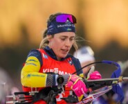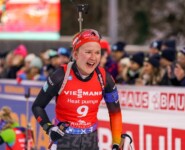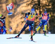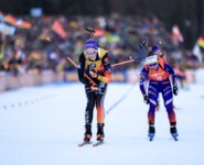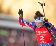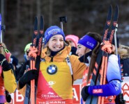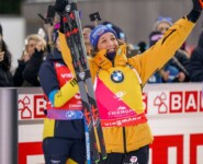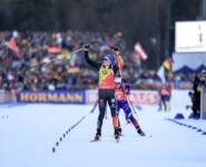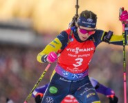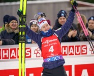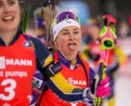 Zum entscheidenden Schießen kamen dann schließlich Lou Jeanmonnot, Elvira Oeberg und Dorothea Wierer zum Showdown. Nur Elvira Oeberg kam ungeschoren davon und nachdem sie eine laufstarke Athletin ist, sah es ganz so aus, als würde Elvira Oeberg das Rennen für sich entscheiden können. Hinter ihr sortierte sich mit 17,8 Sekunden Rückstand die junge Französin Jeanne Richard ein, 0,7 Sekunden später Dorothea Wierer mit 6,9 Sekunden Vorsprung vor der mit einer Schnellfeuereinlage auf die vierte Position vorgerückte Franziska Preuß. Lou Jeanmonnot gab den sicher möglichen Sieg mit zwei Schießfehlern aus der Hand. Mit 42 Sekunden Rückstand kam sie als Siebte in die Schlussrunde. Elvira Oeberg war mit gutem Vorsprung enteilt und lief ihrem zweiten Massenstartsieg in dieser Saison entgegen. Dahinter tobte der Kampf um die verbliebenen Podestplatzierungen. Franziska Preuß hatte sich ihr Rennen offensichtlich gut eingeteilt und die Fans tobten als sie am vorletzten Anstieg mit mächtigem Antritt an Dorothea Wierer und Jeanne Richard vorbeizog auf die zweite Position. Absetzen konnte sie sich von den beiden Verfolgerinnen nicht und von hinten drohte auch noch der Angriff von der starken Finnin Suvi Minkkinen. Im letzten Anstieg versuchten es Wierer und Richard an Preuß vorbeizukommen, aber Preuß hielt mit kräftigen Schritten gegen diesen Angriff. Im Zielsprint setzte sich schließlich Franziska Preuß gegen Jeanne Richard durch und Dorothea Wierer schaffte es trotz aller Anstrengung nicht mehr auf das Podest und musste sich mit Rang vier zufrieden geben. Selina Grotian hat auf der Schlussrunde die Top-10 auf dem zwölften Rang lediglich um 0,4 Sekunden verpasst und Lou Jeanmonnot kam nach ihren zwei Strafrunden aus dem letzten Anschlag schließlich als Neunte ins Ziel und war im Ziel in Tränen aufgelöst. „Es war schon zäh, ich habe schon die Zähne zusammenbeißen müssen. Das Publikum schreit einem so rum, man kann gar nicht anders. Ich habe immer versucht die Batterie zu laden und ich wusste ich muss ins Stadion rein vorne sein und dann laß ich mir das nicht mehr nehmen.“
