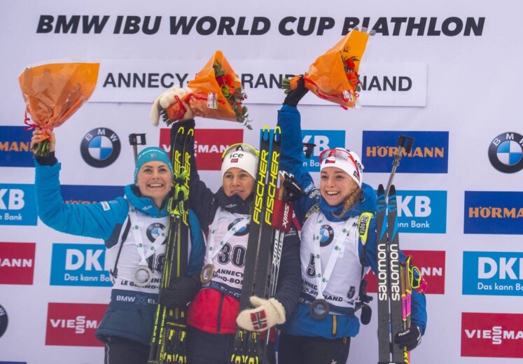 Die Norwegerin Tiril Eckhoff gewinnt im Dauerregen den Sprint in Annecy Le Grand-Bornand vor der Französin Justine Braisaz und Marketa Davidova aus Tschechien. Denise Herrmann läuft an ihrem 31. Geburtstag auf Rang fünf und damit zu ihrem besten Saisonergebnis. Marion Deigentesch und Janina Hettich qualifizieren sich für die Verfolgung.