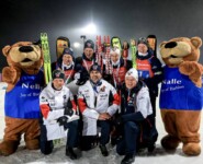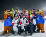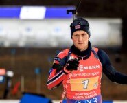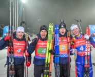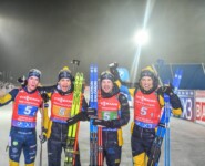 Emilien Jacquelin machte es den Läufern seines Teams nach und räumte liegend sicher ab und mit einer ebenso fehlerfreien Serie behauptete der Schwede die zweite Position, während Johannes Thingnes Boe einmal nachladen musste und den Schießstand auf Rang drei verließ. Philipp Horn benötigte auch eine Zusatzpatrone, dadurch wuchs sein Rückstand weiter an. Richtung Stehendanschlag kam Johannes Thingnes Boe näher an den Schweden heran, während der Franzose sich bereits zum letzten Schießen bereit machte. Emilien Jacquelin fabrizierte den einzigsten Fehlschuss seines Teams und er benötigte sogar zwei Nachladepatronen um die Scheibe weiß werden zu lassen. Sein Vorsprung auf die Verfolger war allerdings so komfortabel, dass der Sieg dadurch nicht gefährdet war. Johannes Thingnes Boe zeigte seine Stärke beim entscheidenden Schießen, traf alle Scheiben, während Samuelsson neben ihm eine Scheibe verfehlte und ebenso wie zuvor der Franzose, zwei Ersatzpatronen für den letzten Treffer benötigte. Philipp Horn setzte zwei Schüsse vorbei und kassierte trotz aller Reservepatronen zu allem Überfluss auch noch eine Strafrunde. Gut dass sein Vorsprung groß genug war, und er den vierten Rang ins Ziel retten konnte. „Es nervt mich gerade so sehr, dass ich in diese Runde musste. Das ist nicht das, was ich kann. Jetzt geht es mir genau so wie Danilo (Riethmüller) gestern. Ich sagte ihm, hab dich nicht so, es hätte am Ergebnis nichts geändert und mir geht es heute genau so, dass ich mich ärgere.“ Sebastian Stalder, Joscha Burkhalter, Jeremy Finello und Niklas Hartweg, in derselben Aufstellung wie im Vorjahr, erreichten nach 12 Nachladern und einem Rückstand von 3:29,6 Minuten Rang acht. Hinter ihnen platzierte sich das österreichische Herrenteam mit David Komatz, Simon Eder, Felix Leitner und Patrick Jakob nach sieben Nachladern und einem Rückstand von 3:39,6 Minuten auf dem neunten Rang.