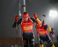 Den ersten Liegendanschlag absolvierte der führende Norweger Sturla Holm Laegreid fehlerfrei, David Zobel traf auch seine Scheiben und ging als Zweiter vom Schießstand weg. Der Deutsche lief sein Tempo und fiel leicht zurück. Stehend brachte Laegreid erneut die Null, der Franzose Fabien Claude neben ihm auch und gemeinsam bogen sie in die Schlussrunde ein. Zobel zog seine Schießeinlage sauber durch und verließ den Schießstand mit 13,5 Sek. Rückstand auf die Spitze an der dritten Position. Bei hohem Tempo auf der Runde vor dem ersten Wechsel blieb der Franzose erst an den Skienden des Norwegers und an der „Kontiolahti Wall“ setzte er zum Angriff über und zog vorbei. Laegreid ließ danach richtig Federn und erst mit 9,6 Sekunden Rückstand kam er zum Wechsel um Tarjei Boe ins Rennen zu schicken. Der Schweizer Sebastian Stalder wechselte als Dritter und der Rückstand von David Zobel war bis zum Wechsel auf Johannes Kühn an sechster Position auf 41,1 Sekunden angewachsen. Zeitgleich wechselte das Team aus Österreich. David Zobel sah sein Rennen im ZDF-Interview zweigeteilt. „Ich bin sehr stolz auf mein Schießen, das ist wirklich gut gelaufen, genau so wie ich es mir vorgenommen habe.“ Auf der letzten Runde musste der Deutsche einen Zeitverlust von 30 Sekunden hinnehmen und erklärte dazu: „Das Laufen war zäh, heute habe ich mich körperlich nicht so optimal gefühlt und hinten raus war ich nicht mehr so frisch und konnte nicht mehr folgen.“