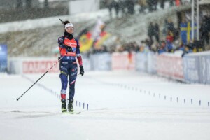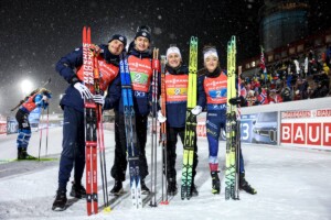 23 Gemischte Staffeln gingen am späten Nachmittag in Östersund an den Start, die Herren zuerst. Nach dem Liegendschießen war das Feld noch relativ geschlossen, aber im Stehendanschlag wurden viele Zusatzpatronen gebraucht. Justus Strelow ging nach fünf Treffern als Führender in seine letzte Runde, hinter ihm der Finne Harjula und der Norweger Endre Stroemsheim. Emilien Jacquelin hat mit dem letzten Nachlader die Strafrunde umgangen, war aber etwas zurückgefallen. Der Schwede Jesper Nelin kassierte eine Strafrunde und war weit nach hinten gespült worden. Strelow konnte sich Richtung Wechsel dem Angriff des Franzosen Jacquelin und des Italieners Giacomel nicht mehr erwehren. Nahezu zeitgleich wechselten dann Italien, Frankreich, Deutschland und Norwegen. Gerade in der dritten Runde hat der Deutsche das Tempo nicht halten können. „Es waren deutlich leichtere Bedingungen heute. Beim Stehendschießen konnte ich abliefern, was ich vorgenommen hatte. Es war eine schöne Schlussrunde, ich hatte noch ein bißchen was im Tank, konnte aber nicht ganz dagegen halten,“ so Strelow nach seinem Wettkampf in der ARD.