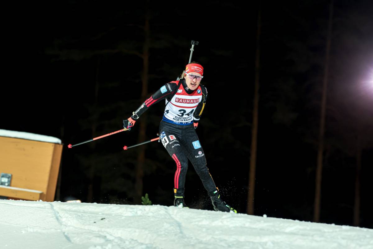 Marlene Fichtner (22) ging als letzte der fünf deutschen Damen ins Rennen und erreichte die beste Platzierung. Am Schießstand lieferte sie nervenstark vier saubere Fünferserien, in der Spur noch nicht ganz so schnell wie die erfahrenen Läuferinnen, sicherte sie sich mit dem fünften Rang einen Platz bei der Blumenzeremonie. Insbesondere beim letzten Anschlag nahm sie sich die Zeit um jeden Schuss ins Ziel zu bringen. Für die geborene Münchnerin und Wahl-Ruhpoldingerin ist der fünfte Weltcuprang ihr bestes Karriereergebnis. „Ich kanns grad noch gar nicht fassen,“ so Marlene Fichtner nach dem Rennen im ZDF. „Ich bin mit dem Ziel vier Mal Null zu schießen ins Rennen gegangen. Ich habe versucht Schuss für Schuss abzuarbeiten. Ich glaube, ich habe es gut geschafft, bei mir zu bleiben, und jeden Schuss als Einzelnen anzusehen und es hat gut geklappt. Auf der Strecke habe ich mich gut gefühlt und versucht immer mit jemandem mitzulaufen.“ Marlene Fichtner war zuletzt im IBU Cup und bei der Biathlon Europameisterschaft in Sjusjoen am Start. Nun wurde sie erneut ins Weltcupteam berufen. „Ich freue mich enorm, dass ich nochmal die Chance bekomme mich hier zu zeigen und bin sehr motiviert.“ Auf dem sechsten Rang landete mit einem Fehlschuss die Schwedin Anna Magnusson.