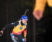 Julia Tannheimer überzeugte mit guter Laufleistung, Selina Grotian agierte am Schießstand schneller. Am Ende belegte Tannheimer nach einem Fehlschuss im liegenden Anschlag mit 56,4 Sekunden Rückstand auf die Siegerin Rang neun nur 2,6 Sekunden vor Selina Grotian auf Platz zehn. Grotian begann mit einer fehlerfreien Serie im Liegen und vergab als im stehenden Anschlag ausgerechnet die letzte Patrone das Ziel verfehlte eine Podestplatzierung. Dennoch haben sich die beiden jungen Deutschen eine aussichtsreiche Position für die Verfolgung erarbeitet. Sophia Schneider (1:3) mit 2:19 Minuten Rückstand auf Rang 35 und Julia Kink (0:2), ebenfalls mit einem Rückstand von 2:19 Minuten werden in der Verfolgung sicher angreifen um sich weiter nach vorne zu arbeiten, für eine Podestchance scheint der Rückstand nach vorne bereits zu groß. Einen gebrauchte Tag erwischte die Thüringerin Vanessa Voigt. Mit zwei Fehlschüssen im Liegendanschlag und 300 Extrametern in den Beinen räumte sie stehend zwar ab, aber in der Spur konnte sie auf der Schlussrunde nichts mehr nach vorne gut machen. Am Ende kam sie auf Rang 68 ins Ziel und hat sich damit nicht für die Verfolgung qualifiziert. Voigt war über Weihnachten und zur Jahreswende krank, musste die World Team Challenge auf Schalke absagen und eine Woche mit dem Training aussetzen. Möglicherweise ist sie noch nicht bei einhundert Prozent ihrer Leistungsfähigkeit, wollte aber in jedem Fall vor heimischem Publikum an den Start gehen.