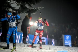 Marlene Fichtner begann mit einem Fehler im ersten Anschlag und auch im zweiten fiel eine Scheibe nicht. Mit zwei Strafzeiten belastet, musste sie das Feld von hinten aufrollen und brachte in der Folge zwei Mal die Null. Dadurch arbeitete sie sich peux a peux nach vorne. Fichtner lag zwar auf der Schlussrunde 21 Sekunden hinter der schnellsten Läuferin, der Siegerin, aber sicherte sich einen beachtlichen 16. Platz. „Ich bin sehr zufrieden, ich war kurz ein bißchen aus dem Konzept gebracht, dass ich zwei Mal mit einem Fehler angefangen habe. Dann habe ich versucht hinten raus 2 x 0 zu bringen und das ist mir gelungen,“ so eine überglückliche Marlene Fichtner, als sie erfuhr, dass sie sich mit ihrer Platzierung auch einen Startplatz für den Massenstart am Sonntag erarbeitet hat. „Die Bedingungen waren irgendwie so mehlig und doch irgendwie schon tief, ganz anders, wie an den Trainingstagen.“ Anna Weidel hat heute ihre sonst bekannte Treffsicherheit gefehlt. Mit insgesamt fünf Fehlern musste sie sich mit dem 44. Platz begnügen. Sophia Schneider auf Rang 45 und Hanna Kebinger als 46. waren ebenfalls mit fünf Strafzeiten belastet. „Fünf Fehler ist definitiv zu viel. Ich kann es mir selbst nicht erklären. Zur Zeit bekomme ich es im Einzel schwer hin. Der Schießstand wirkt einfach und ist doch schwierig, weil immer wieder etwas Wind drin ist, auch mit dem Publikum der Atmosphäre, da muss man sich immer wieder darauf einstellen,“ so Anna Weidel nach dem Rennen. Julia Kink musste sich nach acht Fehlern mit Rang 77 zufrieden geben. Im Hexenkessel der Vysocina Arena brandete jedes Mal, wenn eine tschechische Athletin nur durchs Stadion lief, ein ohrenbetäubender Lärm. Tereza Vobornikova wurde nach zwei Fehlern auf Rang zehn beste des Heimteams.