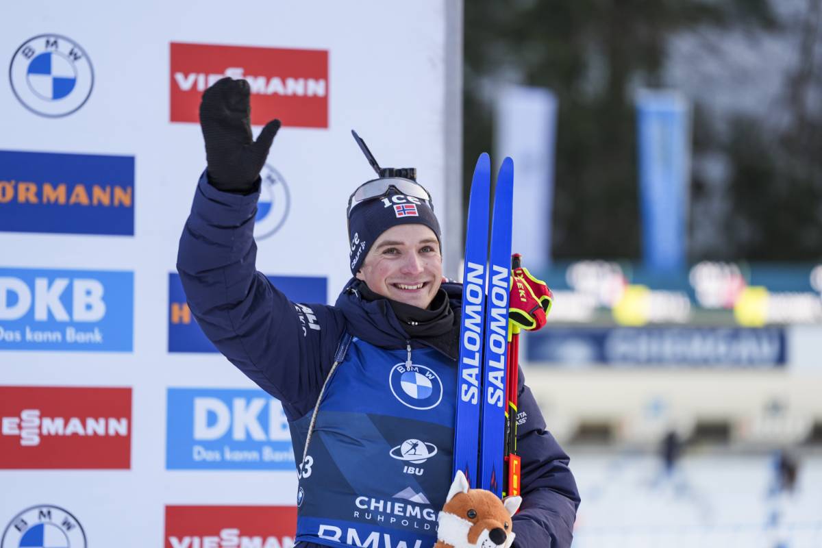 Der 22jährige Norweger Isak Frey, letzte Saison Gesamtsieger im IBU Cup, ist eines der großen Biathlon-Talente aus Norwegen. Diese Saison startete er durchgehend im Weltcup, war das eine oder andere Mal bereits für den IBU Cup aufgestellt und wegen Erkrankung von Kollegen doch wieder aufgerückt. Heute hat er im blauen Trikot in der Wertung des derzeit besten Biathleten unter 23 Jahren mit zehn Treffern und dazu mit einer Top-Laufleistung in der Schlussrunde bewiesen, dass er zurecht im Aufgebot steht. In der Spur war er schnellster Norweger und mit sauberer Weste am Schießstand hat auf dem dritten Rang erstmals ein Weltcup-Podest erreicht. Seine Kollegen Sturla Holm Laegreid oder der sonst so laufstarke Johannes Dale-Skjevdal hielten sich zwar am Schießstand schadlos, aber in der Spur lief es nicht so, wie man es von ihnen gewohnt war. Laegreid belegte am Ende mit 46,7 Sekunden Rückstand Rang sieben und Dale-Skjevdal hatte auf dem zehnten Rang einen Rückstand von 53,5 Sekunden. Rückstände, die im darauffolgenden Verfolgungswettkampf erst einmal aufgeholt werden müssen, um eine erfolgreiche Platzierung zu erreichen. Hinter Frey haben sich die beiden Franzosen Quentin Fillon Maillet (0:0) und Eric Perrot (1:0) sowie der Schwede Martin Ponsiluoma (0:1) platziert.