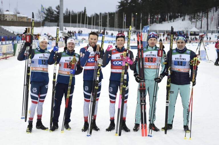Eirik Brandsdal (NOR), Sindre Bjoernestad Skar (NOR), Emil Iversen (NOR), Johannes Hoesflot Klaebo (NOR), Iivo Niskanen (FIN), Ristomatti Hakola (FIN) © Thibaut/NordicFocus