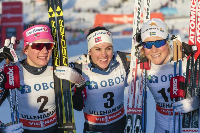 Maiken Caspersen Falla (NOR), Heidi Weng (NOR), Hanna Falk (SWE), (l-r) © Modica/NordicFocus