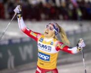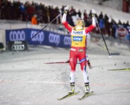 Zeit aufholen gegen Therese Johaug? Mit diesem Sprint war das nicht wirklich möglich…. „Das kann man nicht als Sprint bezeichnen, nur die Länge ist die eines Sprints!“, meinte Therese Johaug und Sprintspezialisten wie Lucas Chanavat wählten in Interviews dieselben Worte. Dementsprechend kam der Kurs der Norwegerin entgegen, auch wenn sie sich einen richtigen Sprintkurs für die Fairness in der Ski Tour gewünscht hätte. Schon im Prolog war Therese Johaug 4,5 Sekunden schneller als Heidi Weng, im Viertelfinale konnte sie dann aber zunächst nicht ihre Stärken ausspielen: Als Distanzläuferin kam sie nicht so schnell aus den Startlöchern und das Überholen gestaltete sich schwierig auf dem nur 666 Meter langen Kurs mit einem kleinen Anstieg, einer Steilkurve und einem langen Anstieg, der schon als Mördarbakken bezeichnet wurde und im steilsten Abschnitt 35 Steigungsprozente hatte. Am Ende konnte sie sich aber mit Weng durchsetzen, wie auch im Halbfinale, obwohl sie nach der Startpassage den anderen mit einigen Metern Abstand hinterher lief. Im langen, steilen Anstieg spielten ihr dann die anderen in die Karten: Hätten sich die Athletinnen wieder über die gesamte Strecke verteilt, hätte Johaug wieder Slalom laufen müssen – aber alle Damen reihten sich hintereinander rechts am Anstieg ein, links war alles frei für Johaug zum Überholen und dem ungefährdeten Einzug ins Finale zusammen mit Heidi Weng.